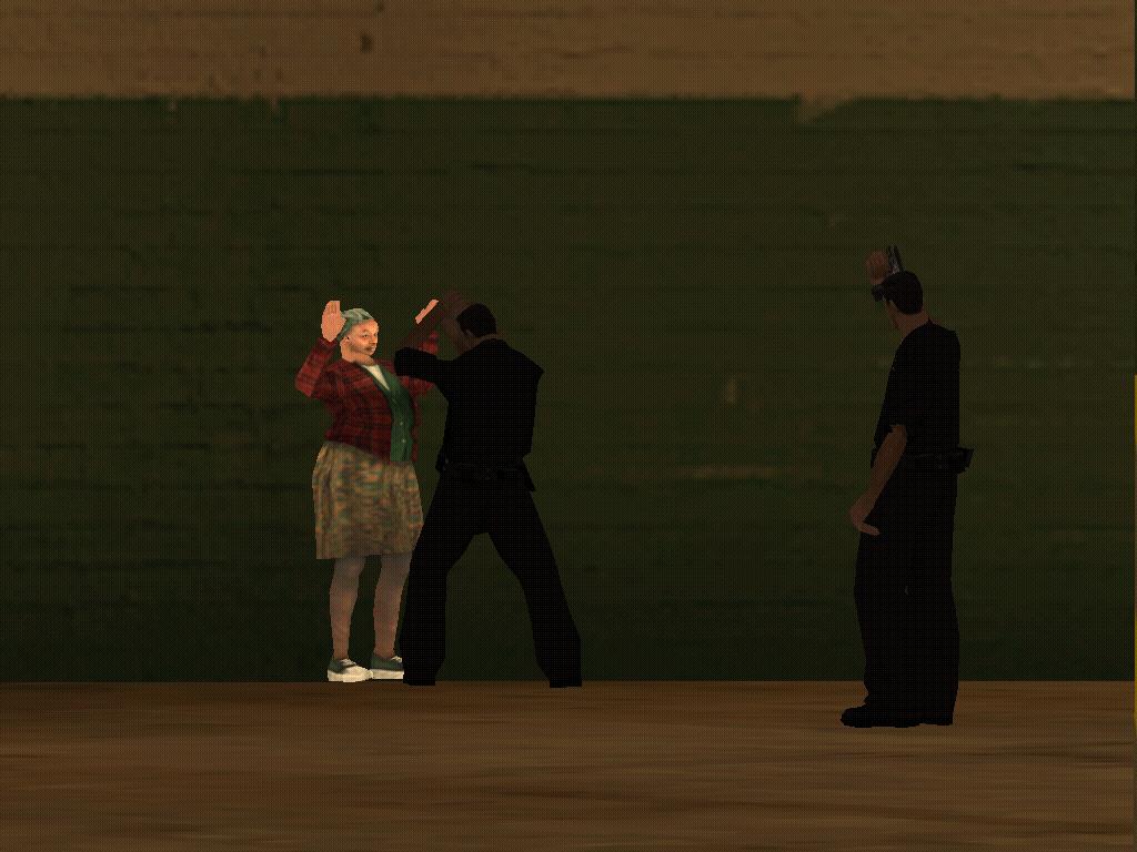 No estacionamento subterrâneo da estação de polícia de Los Santos há dois policiais surrando uma pessoa até a morte , mesmo se você matar os dois policiais a pessoa vai fica imóvel .